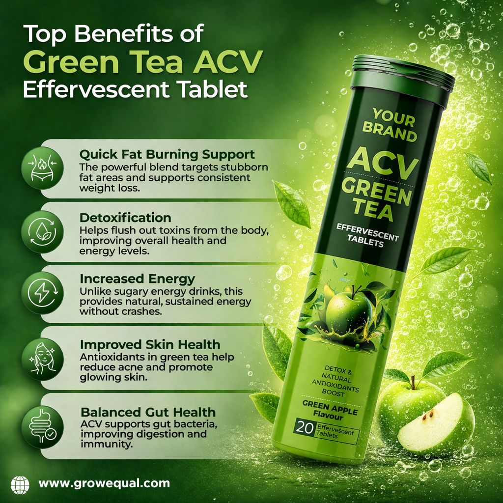 This makes the Green Tea ACV Effervescent Tablet an ideal choice for modern consumers.