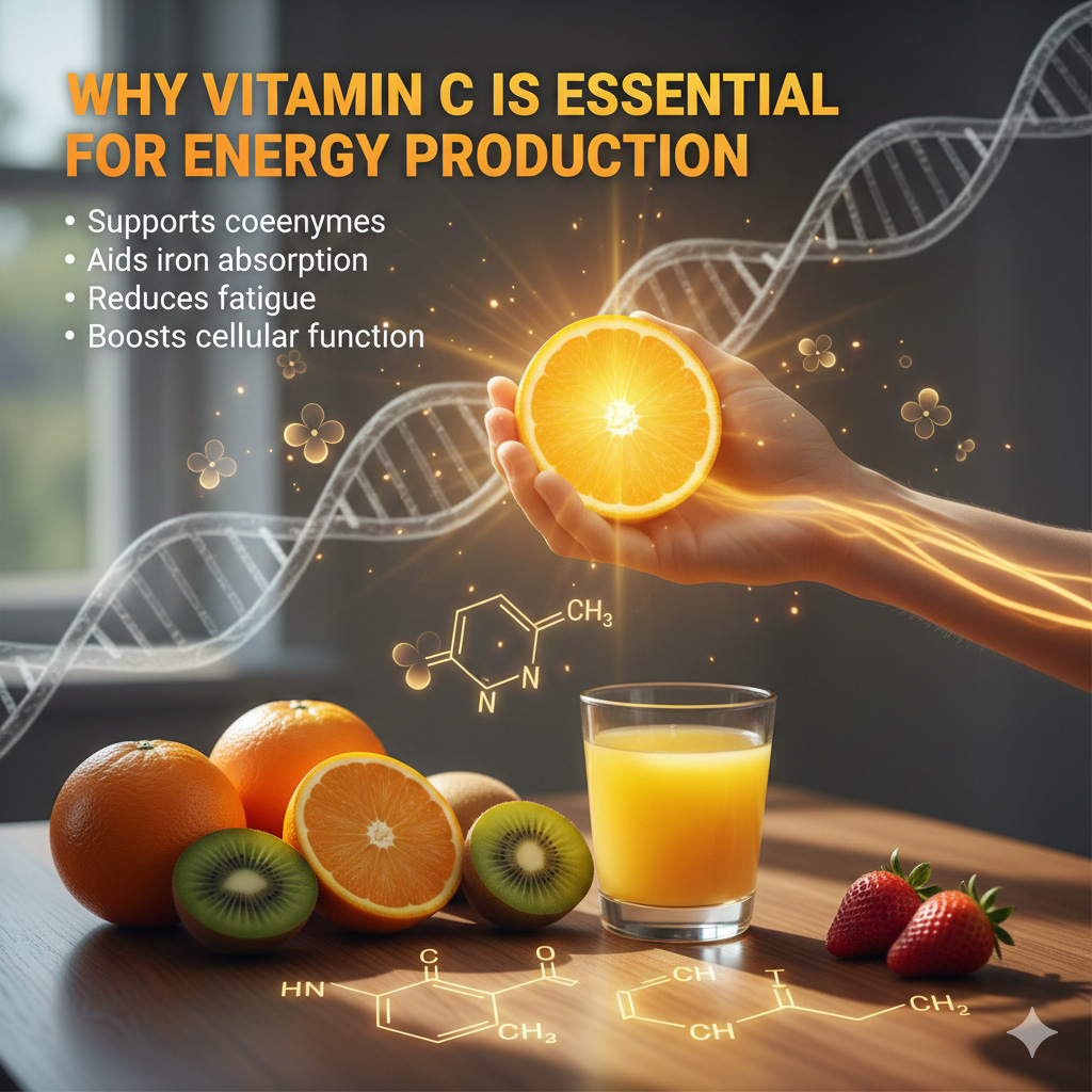 Vitamin C plays a vital role in several bodily functions that directly influence energy levels: